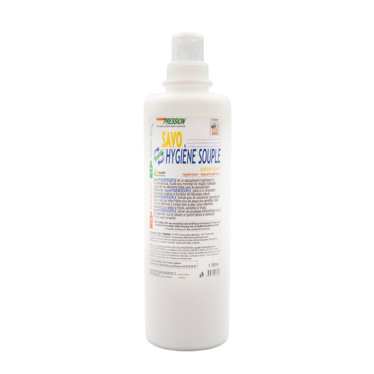 Hygiène Souple est un assouplissant hygiénisant et hypoallergénique : Il est étudié pour minimiser les risques d’allergies causés par les vêtements traités avec les assouplissants traditionnels !